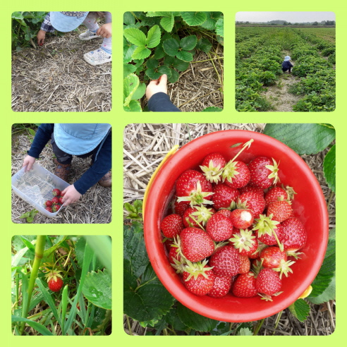 Wir sind zu besuch auf dem Erdbeerfeld.