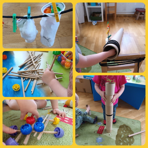 Die Eltern unterstützen uns in diesem Projekt und tragen gemeinsam viele kreative Kleinigkeiten aus dem Alltag zusammen.